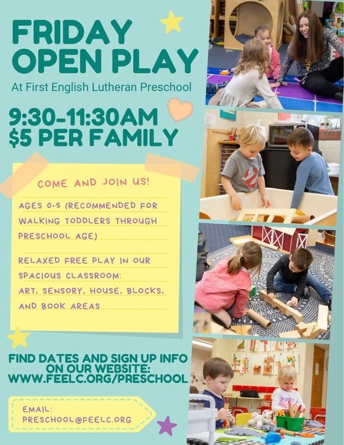 At First English Lutheran Preschool, children are unique individuals who learn through play in a safe, nurturing and inclusive environment. Our teachers are knowledgeable in the field of child development, provide appropriate developmental experiences and opportunities for each child through careful planning and observations. First English Lutheran Preschool’s play-based philosophy enriches the whole child, including social, emotional, physical, cognitive, creative, and spiritual development. All families are welcome at FELP.