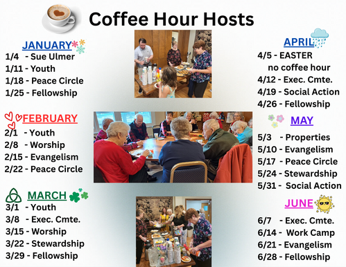 Don't miss out on our amazing post-service social gathering! We're inviting you to join us in the lounge after each worship service for coffee, juice, and delicious treats. It's the perfect opportunity to engage in inspiring conversations and foster lasting connections with fellow First English members. Let's strengthen our community spirit together!